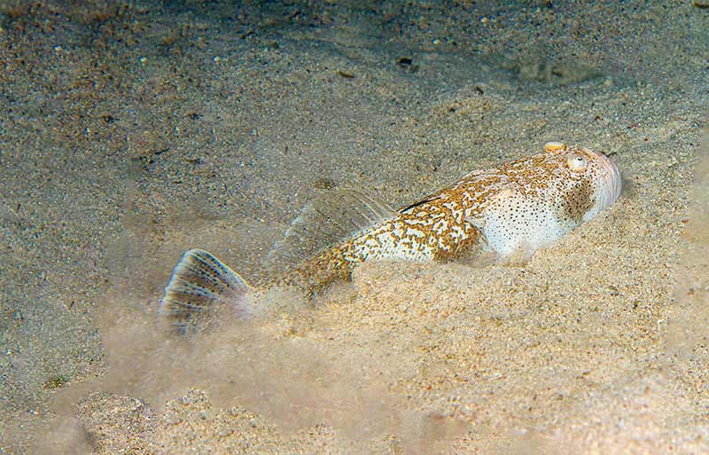 观星鱼通过稍微扭动身体和两侧的大胸鳍,在短短几秒钟就能将自己埋在沙子中,眼睛露出沙子并观察周围的情况。所以在自然的环境中观星鱼很难被发现。它的嘴巴和鼻孔长有短且互相交错的肉质绒毛,能避免沙粒的进入。